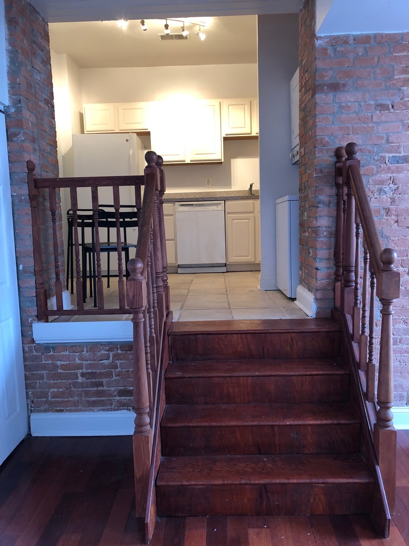 Available monthly or long term. Lovely, fully furnished and outfitted with everything you need. Rent includes all utilities and wifi. Large and bright apartment in newly renovated, secure building with elevator. Cherry hardwood floors, high ceilings, carpeted bedroom, exposed brick walls, raised modern kitchen with dish washer and w/d, central air conditioning.